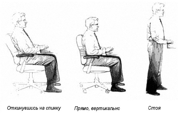 В зависимости от выполняемых задач можно определить удобные позы в положении сидя и стоя.