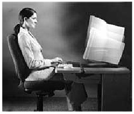 беспроводной клавиатурой, положив ее себе на колени, или карманным компьютером в аэропорту. В каждом из этих случаев выбирается рабочая поза и положение тела в зависимости от того, где находятся компьютер, телефон, справочники и документы. Можно также регулировать освещение и другие факторы.