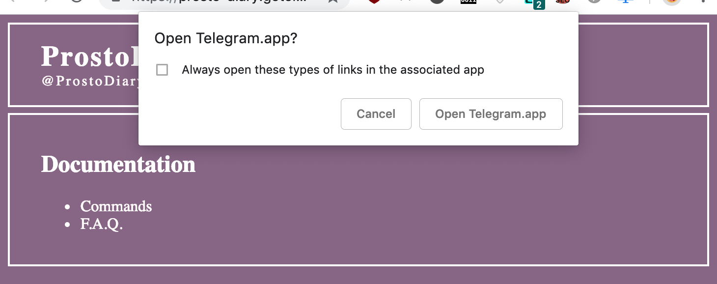 Теперь на одной странице можно увидеть инструкции и сразу получить ссылку на установку бота.